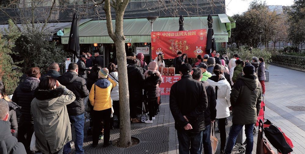 【欧洲时报记者黄冠杰巴黎报道】在农历兔年春节来临之际,1月18日下午,在法国福建工商联合会和法国福州十邑同乡会的协助下,中国驻法使馆在巴黎13区让-米歇尔·巴斯奎亚广场(place Jean Michel Basquiat)的Sushi Story餐馆前向旅法困难侨胞发放“春节包”,为侨胞送去祖国的关心关爱和新春祝福。中国驻法使馆领侨处万磊参赞、刘辉秘书,法国福建工商联合会创会会长、法国福州十邑同乡会会长石忠胜及其常务会长团成员在现场向侨胞发放了“春节包”。
