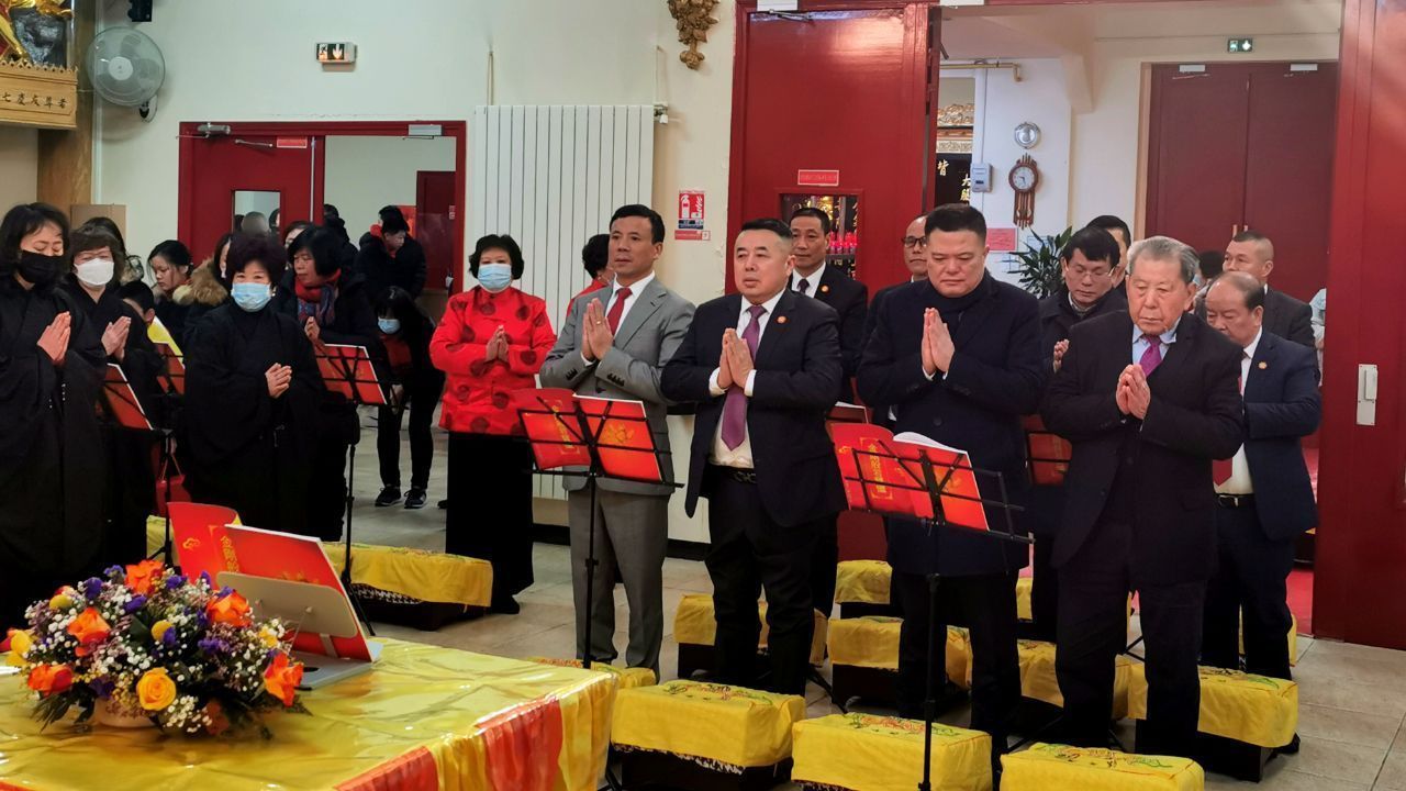 (欧洲时报记者欧文报道)法国当地时间2023年元月21日,中国农历壬寅虎年大年除夕。位于巴黎东郊邦丹市的法华寺举行一年一度的新春祈福法会,迎接癸卯兔年的到来。