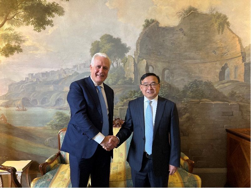 中国驻意大使贾桂德会见托斯卡纳大区主席贾尼。(图片:中国驻意使馆官网)