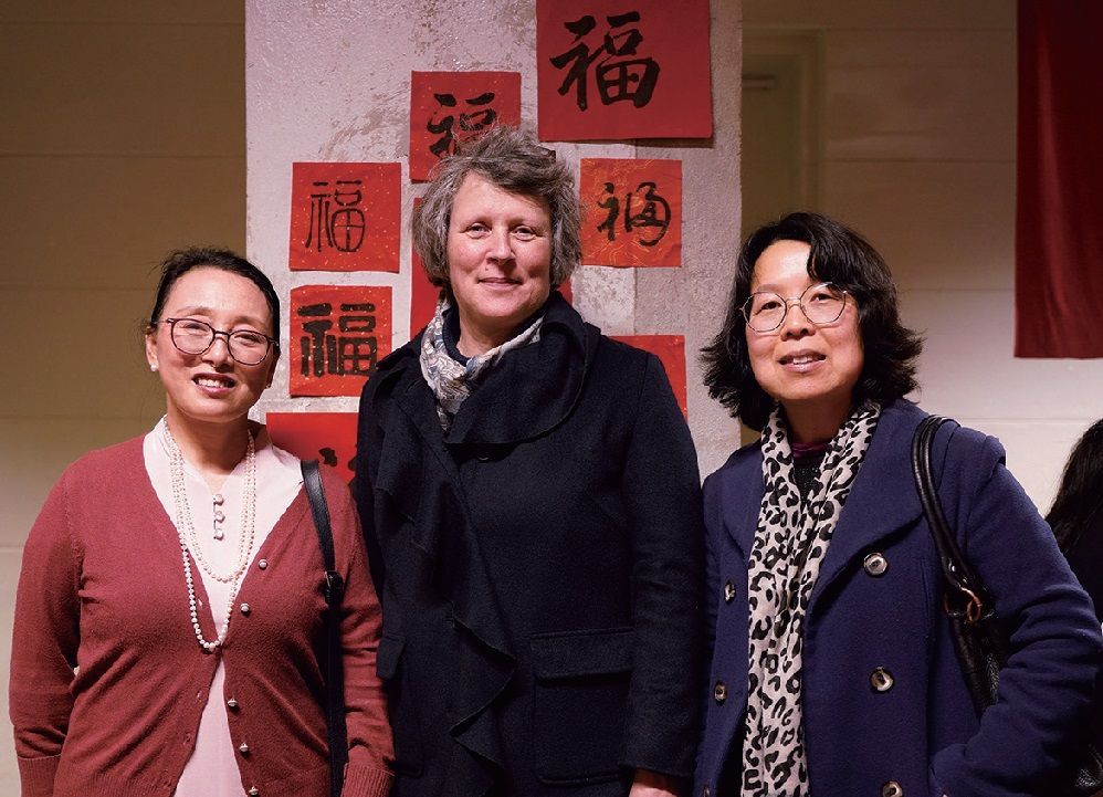 巴黎西岱大学孔子学院中方院长刘萍(左)、法方院长张香筠(右)、人文学院副院长ClaireSaillard教授(中)在活动上。韩韬摄