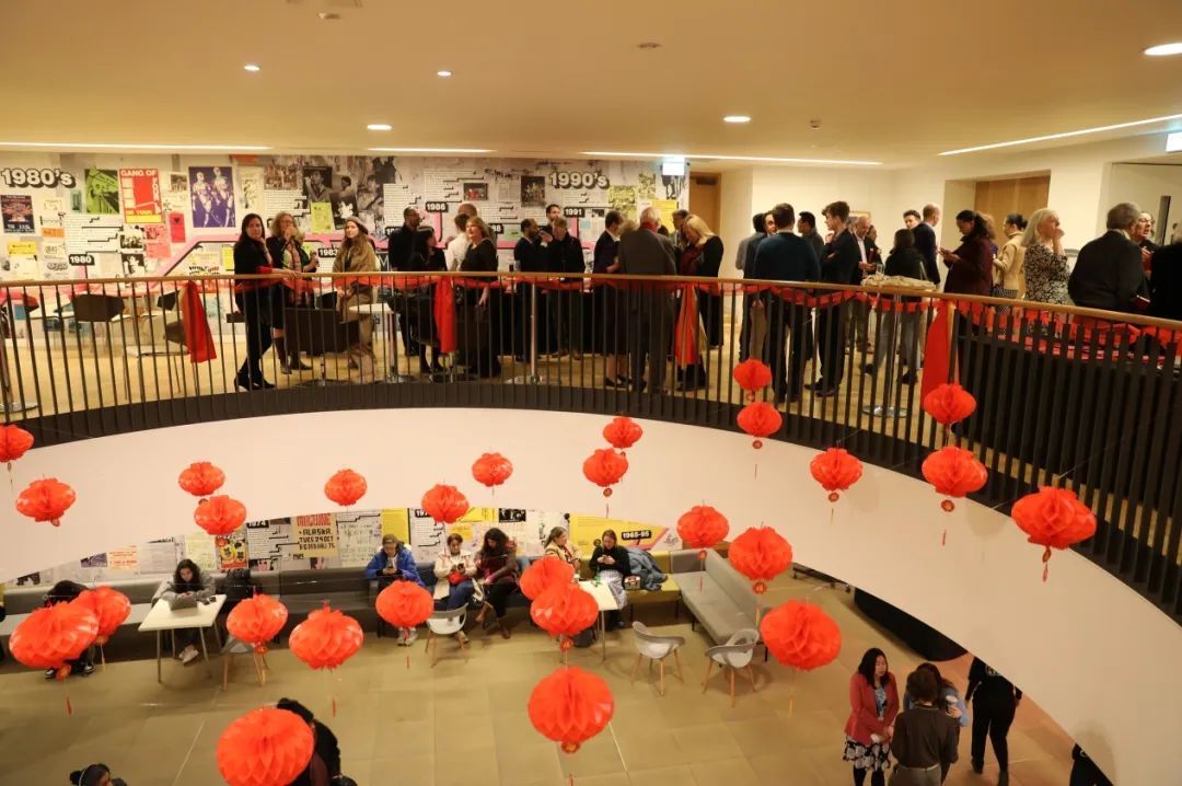 晚会当天,为庆祝中国新年,伯明翰大学的标志性建筑Joe Tower和音乐厅特别亮起了中国红,烘托出浓浓的中国新年味道。音乐厅内也张灯结彩,到处挂满红灯笼,到处洋溢着新春喜庆气氛。
