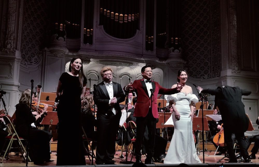 【欧洲时报记者黄冠杰巴黎报道】2月15日,一场以爱之名演出的音乐会“爱之路”在巴黎佳沃音乐厅(La Salle Gaveau)上演。由中国著名“三大男高音”之一的莫华伦、男高音黄加恩、旅意华人女高音王冰冰和法国著名女中音玛丽·卡拉尔(Marie Karall)联手德国萨尔国家管弦乐团,奉献了一场古典歌剧音乐的盛宴。返场演出时,四位艺术家共同用中文演唱了《我和我的祖国》引爆全场,大家齐声合唱,出现了古典音乐会罕见的场面,将音乐会推向高潮。
