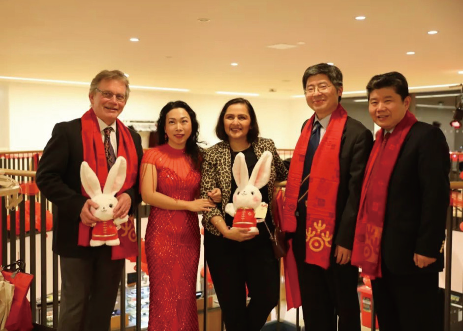 在音乐会前的招待会上,李立言公参与伯明翰大学副校长、中国学院院长Jonathan Frampton等校领导见面,赠送了“欢乐春节”吉祥物生肖兔。(图片来源: 主办方供图)