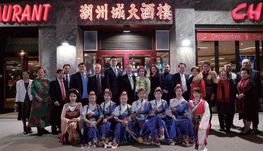 【欧洲时报记者黄冠杰巴黎报道】3月5日晚,巴黎潮州城大酒楼内琴瑟和鸣,霓裳羽衣,欢歌笑语,华舞翩跹,这是法国广东会馆在这里庆祝一年一度的三八国际妇女节。中国驻法使馆领侨处副主任宁亚龙、一秘李成元,部分旅法侨社代表,法国广东会馆周吉庆主席及夫人陈秀英、执行会长马致远及夫人以及会馆成员及家属300余人共庆佳节。