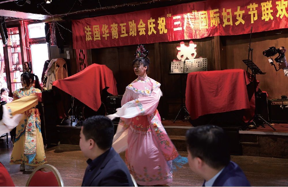 会上,法国华裔互助会中文学校的学生为大家表演了精彩的舞蹈。郑桂珊执行会长等一起为庆祝妇女节切了节日蛋糕。法国华裔互助会会长郑江秀文等会长团成员、法国环亚旅游、中国城大酒楼等公司、法国潮州会馆等兄弟侨团代表捐赠了丰富多彩的奖品。
