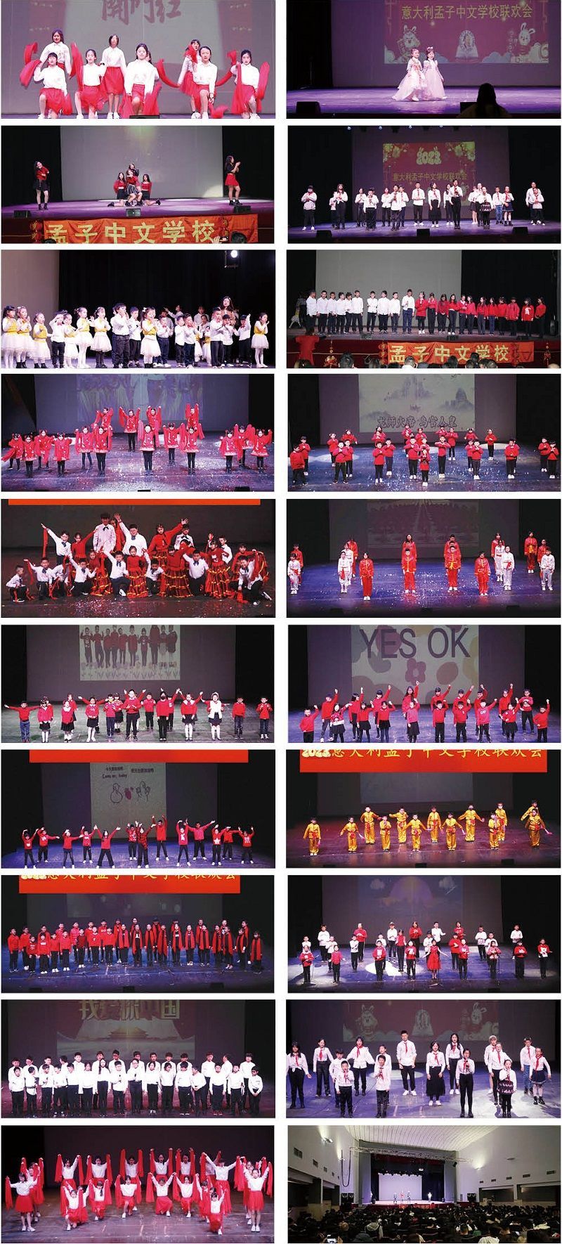 【欧洲时报特约记者杨潮罗马图文报道】5日,在罗马的Nuovo Teatro Orione剧院举办了孟子中文学校2023联欢会,此次活动旨在促进中华文化传承,加强师生与家长之间的联系,同时也为孩子们提供一个展示自己才艺的机会,激励他们勇于表现自我、努力追求梦想。中国驻意大利大使馆领侨处主任张婵,领事张虓以及孟子中文学校师生和学生家长,华文媒体代表等近千人参加了此次活动。