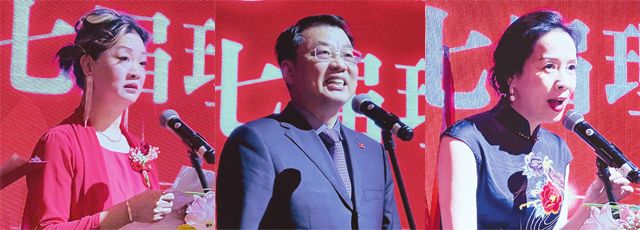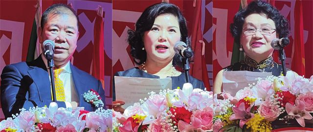执行会长郑瑞雪宣读中华海外联谊会贺电,第一常务副会长林丽南宣读中华全国归国华侨联合会贺电,第一常务副会长叶青宣读国内外发来贺电的单位名单。