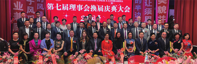 从左至右分别是第七届会长余小叶发表就职讲话,中国驻米兰总领事馆总领事刘侃发表讲话,老会长林剑秋作会务工作总结。