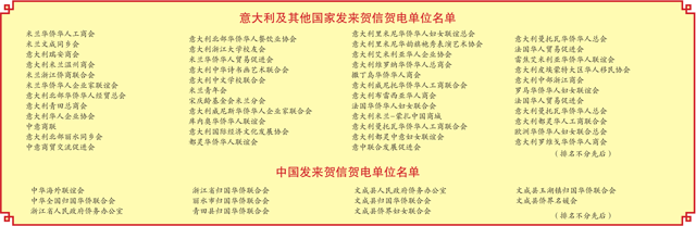 接着,米兰华侨华人妇女联谊总会执行会长周肖萍宣读了理事会成员名单;执行会长郑瑞雪宣读了中华海外联谊会贺电;第一常务副会长林丽南宣读了中华全国归国华侨联合会贺电;第一常务副会长叶青宣读了国内外发来贺电的单位名单。