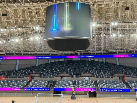 离开体育场,记者们沿着空中环道走向黄龙体育馆。据介绍,环道位于黄龙体育中心体育场外圈,全长1公里,去年9月24日正式开放,已经成为西湖区全民健身的“最美场景”。黄龙体育中心体育馆是亚运会体操项目比赛场馆,承担体操、艺术体操、蹦床三个体操类项目。改造升级后的黄龙体育馆,在硬件和观赛体验等多方面都有了提升:座椅全部更新,选用契合场馆气质的高级灰和雾霾蓝色系。场馆正上方悬挂了一个“大家伙”——四面面积共206平方米的超高清斗屏,重达14吨。和主体育场一样,体育馆内也安装了上下两道环屏。上环屏长约246米,下环屏长约143米。赛时,环屏可播放字幕、画面等,有利于提升观赛氛围。