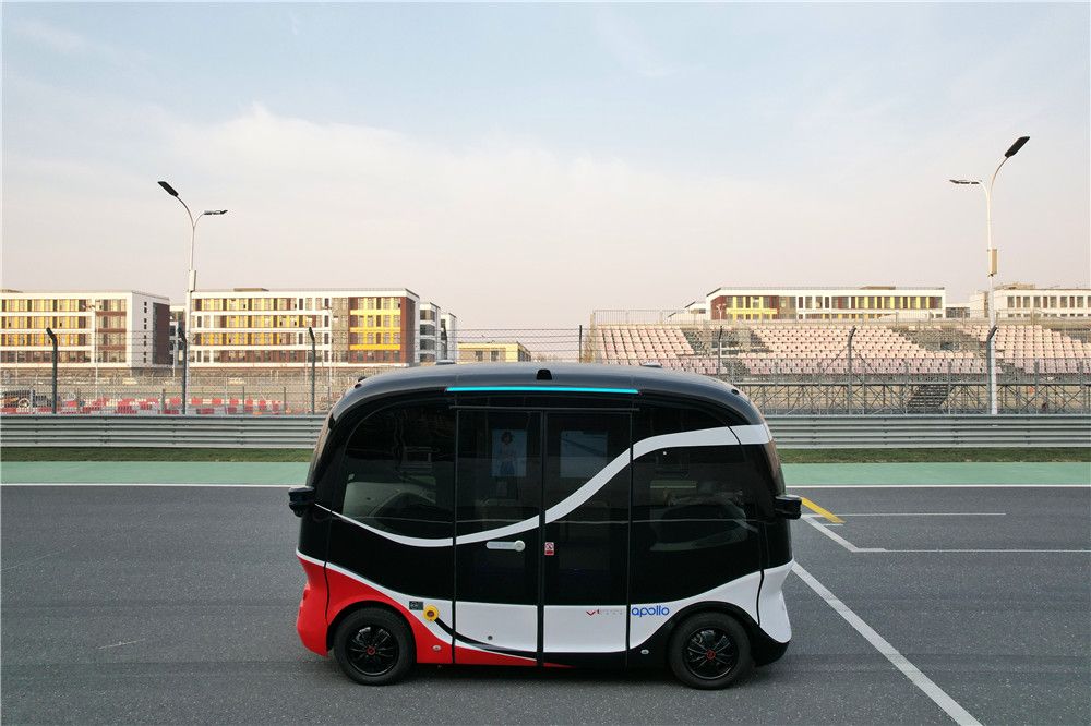 2022年12月2日,无人驾驶智能网联车在天津V1汽车世界内的赛道上行驶。近日,中国首个侨商产业聚集区天津“侨梦苑”的V1汽车世界引进的无人驾驶智能网联车进入试运行阶段,该车辆可在园区内实现参观考察、观光游览、移动无人零售、短距离接驳、自动安防巡检等场景应用。(无人机照片)(图片来源:中新社)