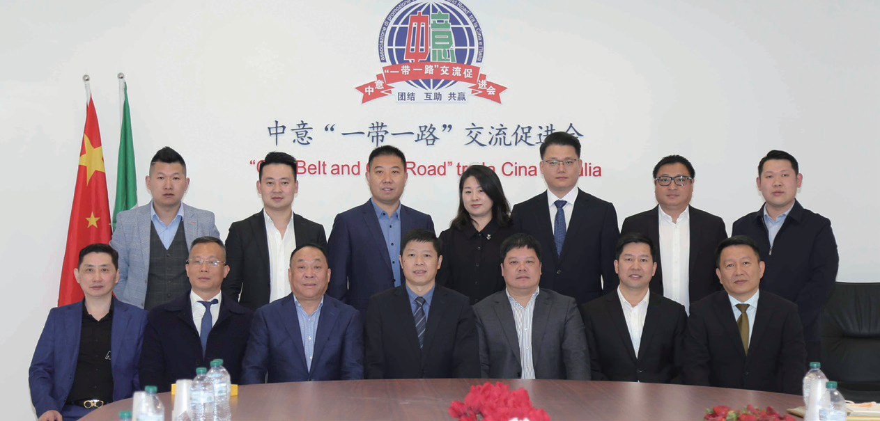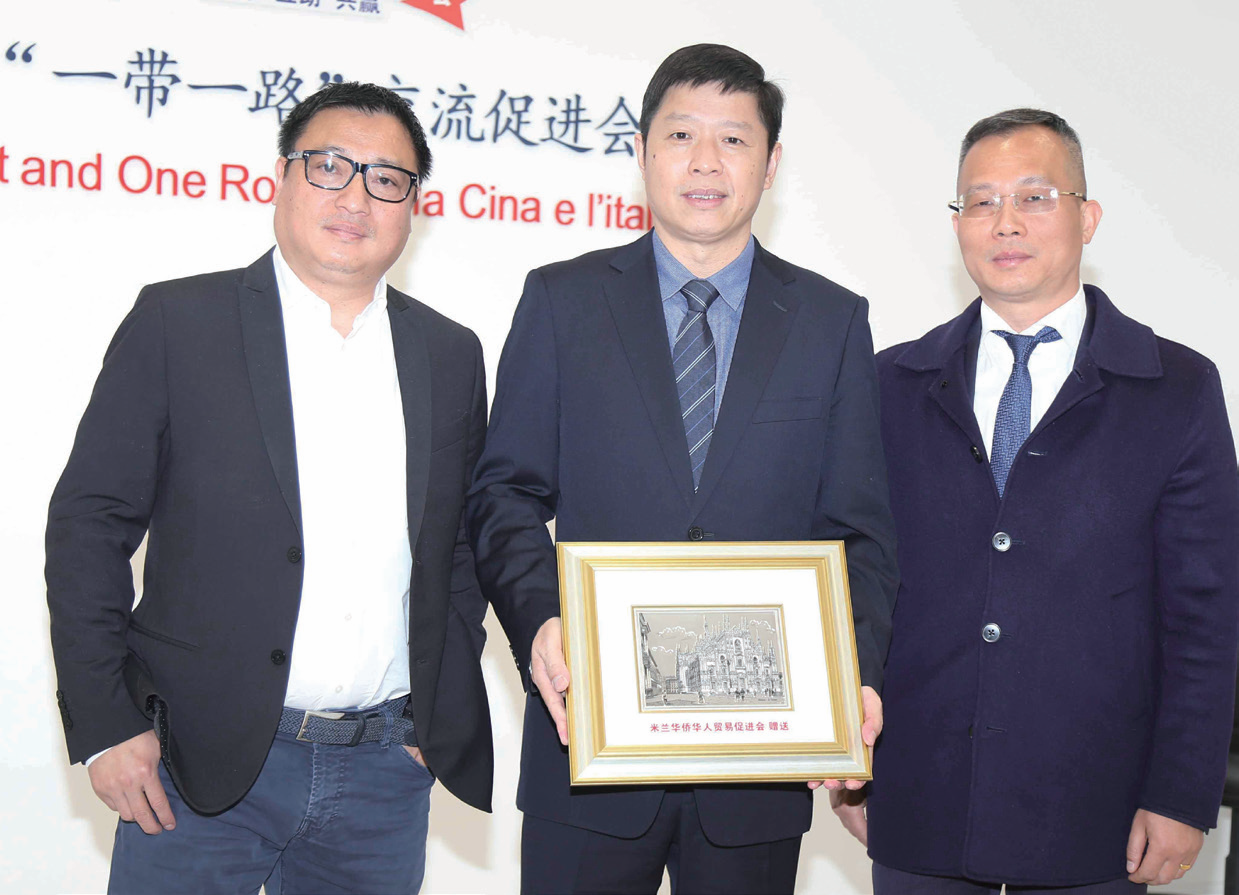 考察团与米兰华侨华人贸易促进会主要成员合影留念。