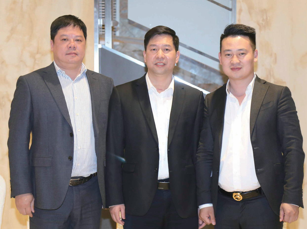 江苏籍侨领、常务副会长李安东(右),连云港高薪区驻欧洲商务代表处首席代表、连云港华欧科技产业园董事长叶序浪与连云港高新区管委会副主任陈创(中)合影。
