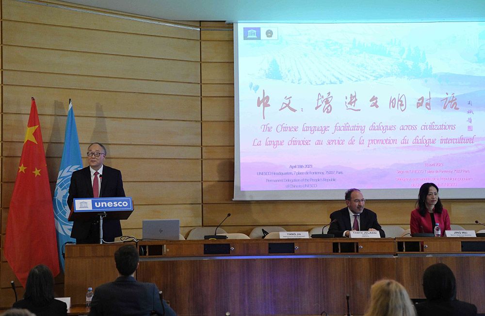 中新社报道,据介绍,这是第二次在联合国教科文组织庆祝联合国中文日,今年的庆祝活动包括“中文:增进文明交流互鉴”主题论坛和招待会。中国常驻联合国教科文组织代表杨进主持论坛。