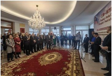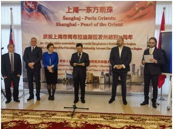4月25日,中国驻斯洛伐克使馆举行“上海·东方明珠”推介会,庆祝上海市同布拉迪斯拉发州建立友城关系20周年。斯国民议会副议长普乔林斯基、外交部国务秘书布洛茨科娃、布州州长德罗巴、前外长德麦什及各界友人、驻斯使节等百余人出席。