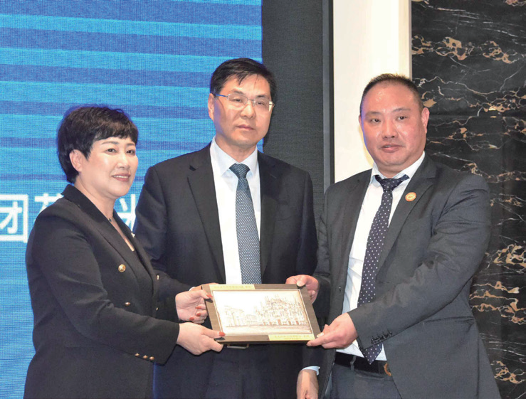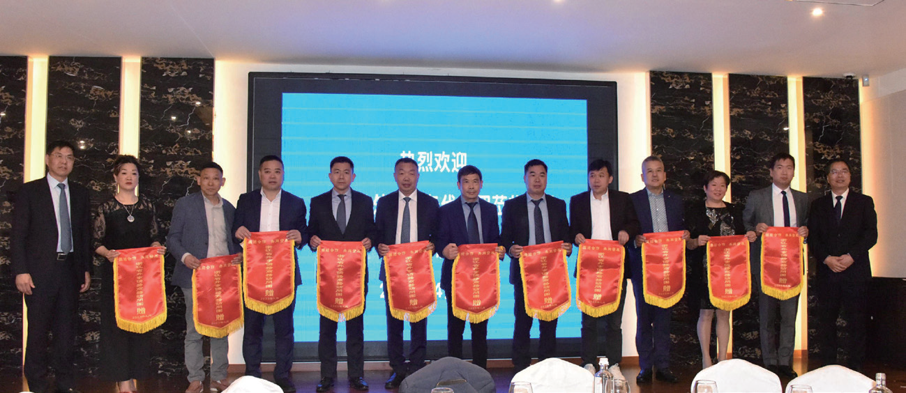 讲话结束后,意大利北部丽水同乡会会长饶俊媚和意大利中意经贸交流促进会会长刘晓春代表米兰侨界向彭波团长赠送了纪念品。彭波团长和缪建栋副主任向米兰23个侨团赠送了绣有“团结合作、共同发展”的锦旗。
