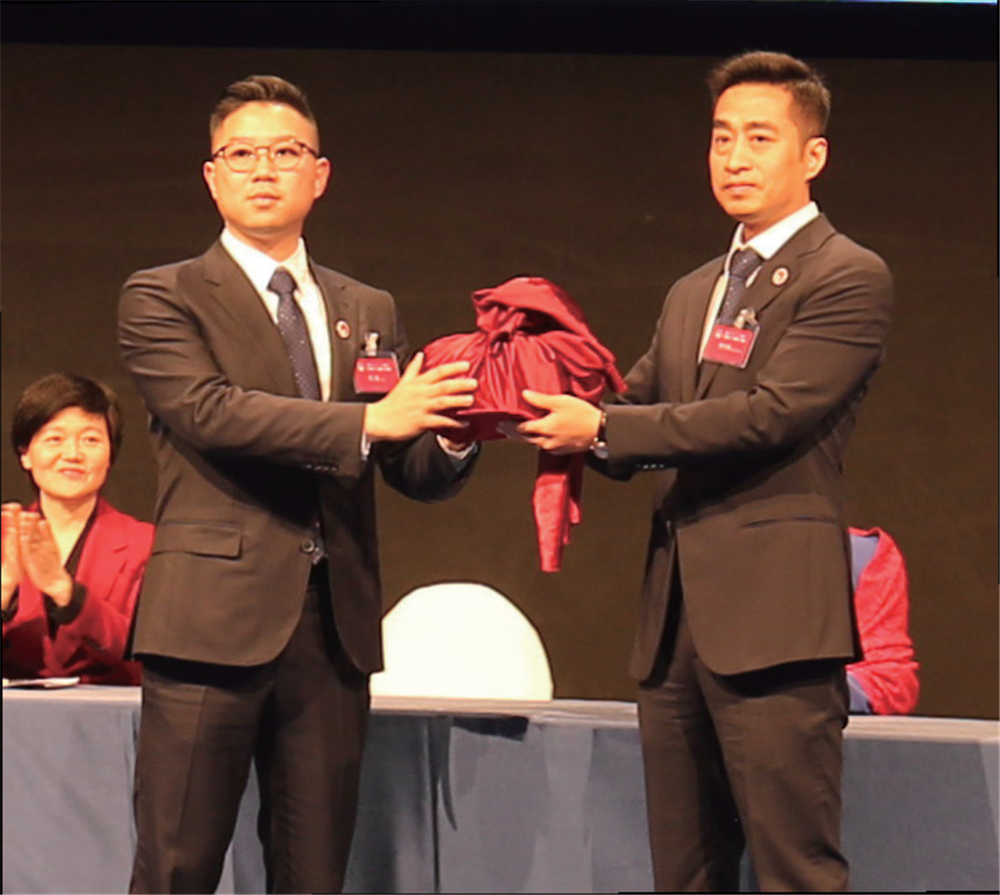 随后,进行会印交接仪式,在来宾们的共同见证下,新任会长徐磊从曾步锋手中接过会印。