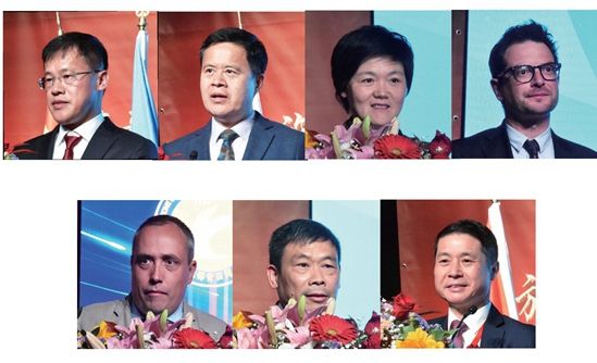 从左至右分别为执行会长陈格盛宣布庆典大会开幕,第一常务副会长张荣伟致欢迎词,秘书长郭晓忠、主持人微微主持活动,外事部长何益祥宣读理事会成员名单,妇女部长武万琴宣读中华海外联谊会贺电,财务部长陈大可宣读中华全国归国华侨联合会贺电,监事长王庆宣读浙江省归国华侨联合会贺电,文化部长张超军宣读国内外贺电名单。