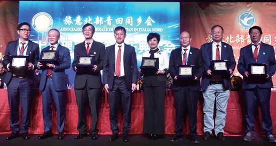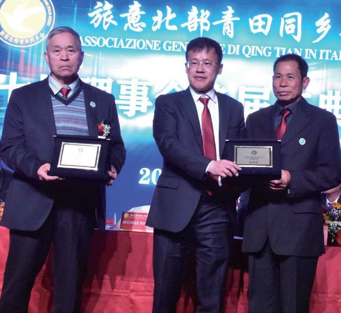 【欧洲时报记者夏晓彤帕尔马图文报道】4月17日,旅意北部青田同乡会第七届换届庆典大会在帕尔马会展中心举行。老会长章明众望所归当选第七届会长。中国驻米兰总领事馆副总领事张凯斌,青田县委书记林霞,帕尔马省长Andrea Massari,帕尔马市长Michele Guerra,青田县侨联主席叶娟,米兰华侨华人工商会会长黄国权,意大利华商总会会长洪森淼及各界友好人士逾400人出席活动。