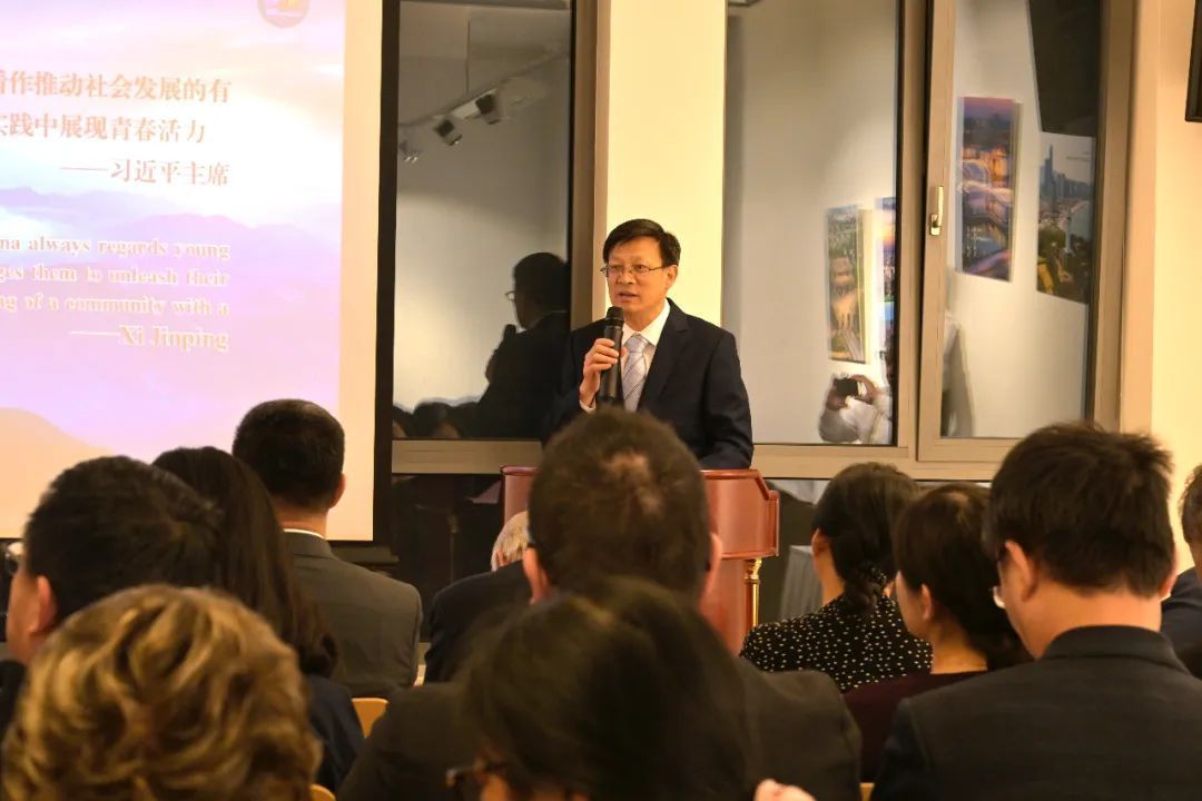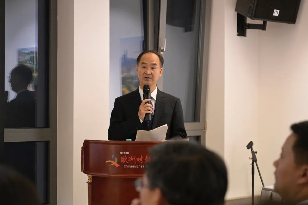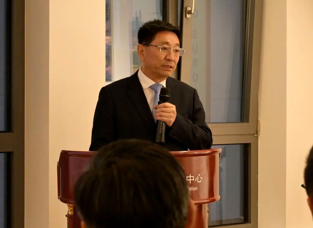 山东省委外办主任蔡先金致辞并对山东对外工作进行了介绍,介绍了山东在外特别是在奥等欧洲国家侨胞情况,以及德奥等国在山东文化交流、经贸合作等方面的情况。也着重介绍外办主办的国际青年交流大会,期待奥地利青年与政商民文各界人士可以踊跃参与。