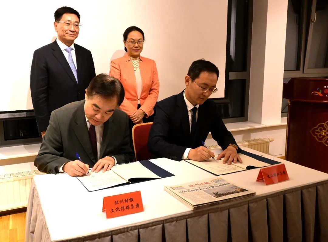 推介会同时设有双方协议签署仪式,在致辞结束后大众报业集团和欧洲时报文化传媒集团签署合作协议。
