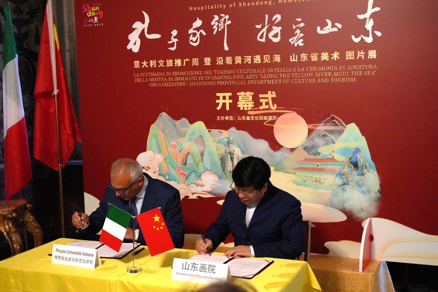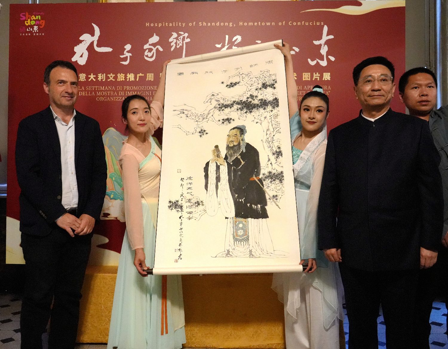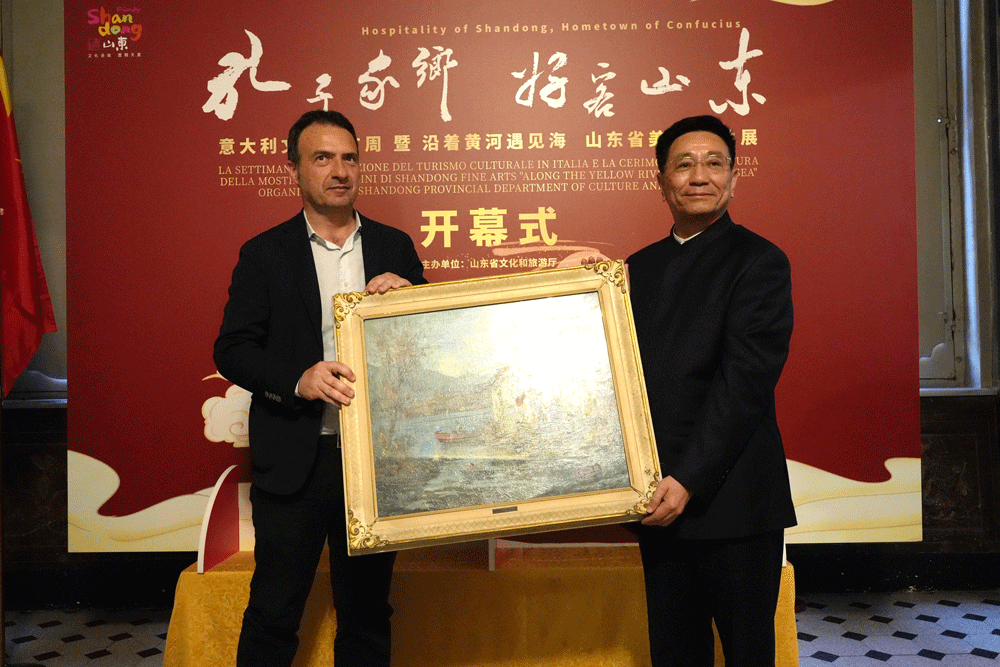 【欧洲时报讯】由山东省文化和旅游厅主办的“孔子家乡好客山东”意大利文旅推广周暨“沿着黄河遇见海”山东书画图片展5月6日在罗马成功开幕。