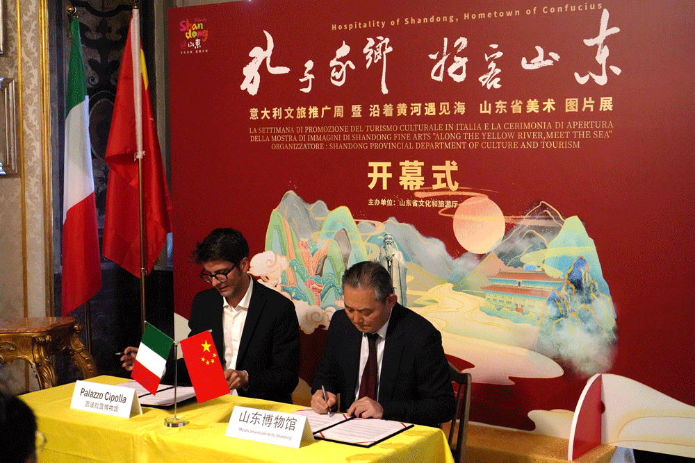 山东博物馆与西波拉宫博物馆、山东画院与特罗佩亚语言和文化学院分别签署了合作协议。