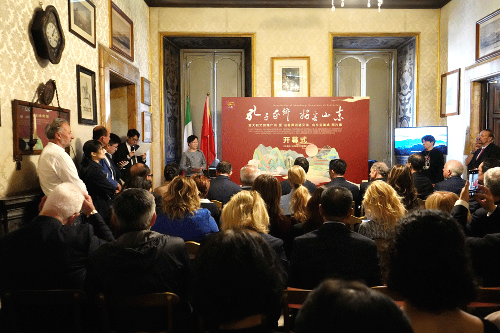 山东省文化和旅游厅厅长、省文物局局长王磊主持了开幕式。山东省委常委、宣传部部长白玉刚,中国驻意大利大使馆公使郑璇,意大利拉齐奥大区议员法布里齐奥等出席活动并致辞。