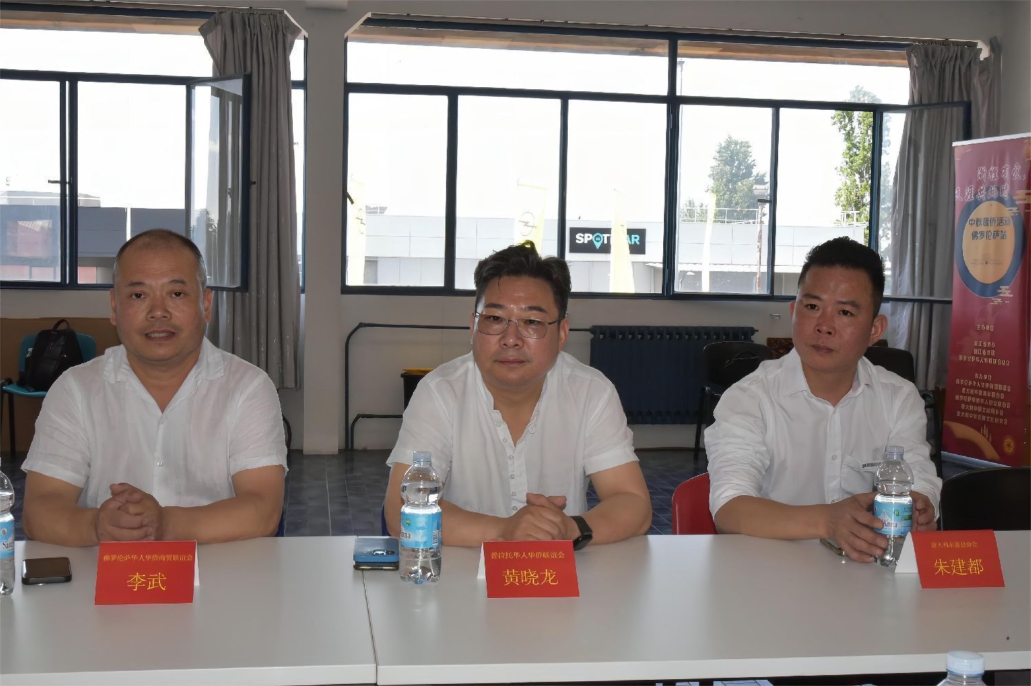 番禺区组织部副部长罗翌洁、贸促委主任沈鸿、经济技术开发区管委会副主任夏平、沙湾街党工委书记张永兴,佛罗伦萨华人华侨商贸联谊会王永根、金毓松、李武、虞管中、高锋、刘珍、李卫东、缪友情、董学成、潘劭峰,侨界代表朱建都等出席了座谈会。