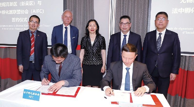 座谈会上,韩杨就无锡高新区创新氛围、引才政策及产业发展情况进行了推介。无锡高新区同法中孵化器联盟协会签署无锡高新区法国工作站合作备忘录并举行授牌仪式。无锡高新区(新吴区)海外联络站(法国)正式挂牌成立。孙学光主席表示,将会继续发挥连接、沟通中法科技创新和商务合作的桥梁纽带作用,将无锡高新区法国联络工作站打造成为一个宣传展示高新区形象、输送科技项目成果、推动商务合作的高效务实的平台。