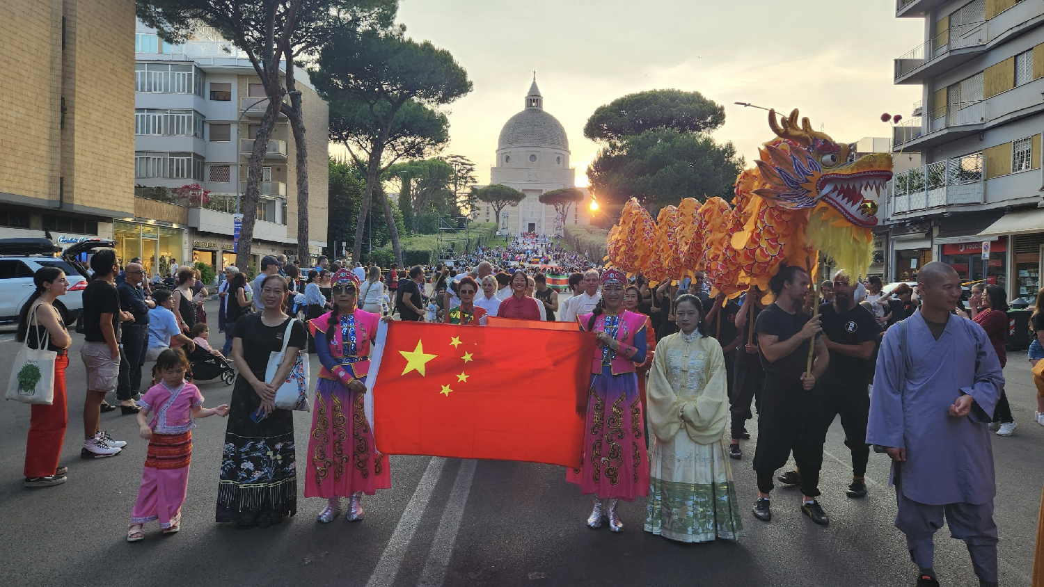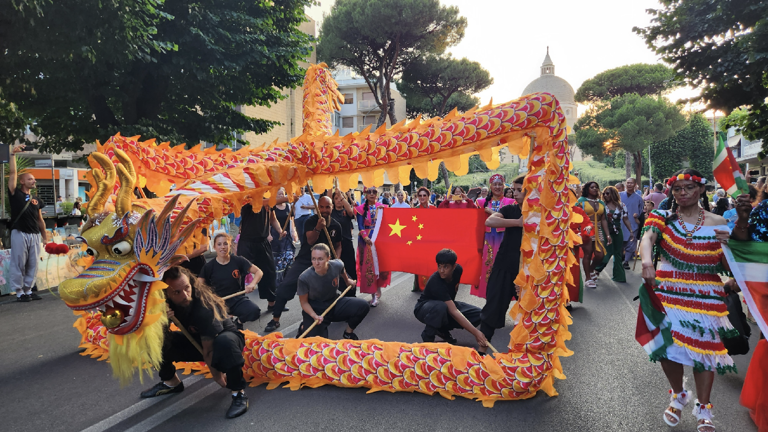 当天下午,中国博览会展区人员参加由罗马9区区政府举办的白昼之夜活动,各国代表手持自己的国旗,中方代表举着国旗从人群中缓缓走过,同时伴有舞龙和太极的表演伴其左右,精彩的表演令观众赞不绝口。