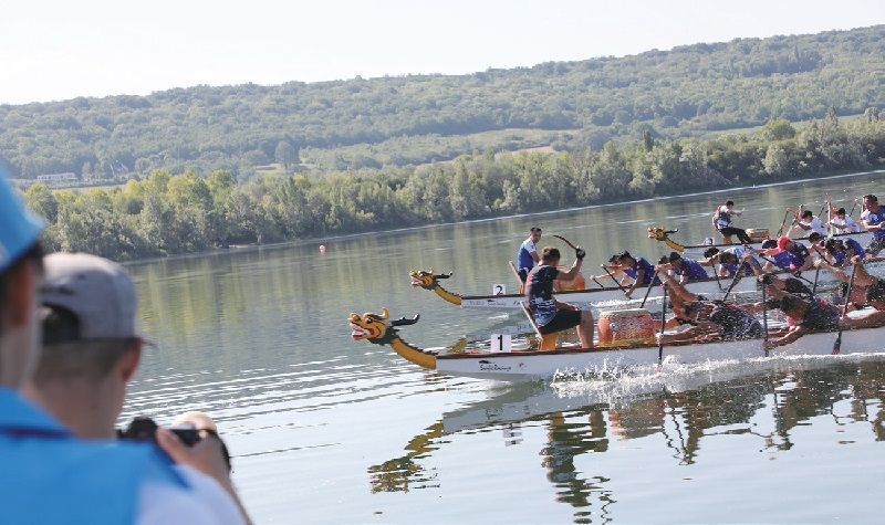25日是巴黎今年以来气温最高的一天,艳阳当空,万里无云,清风徐徐,是举行龙舟赛不可多得的好天气。国际龙舟比赛设200米及500米两种赛程,采用10桨手赛制,每支龙舟队伍12人,并且要求每个团队必须有两名以上的女性桨手。参赛队伍包括意大利青龙龙舟队A、B队,意大利中龙龙舟队A、B队,意大利华人龙舟队,中国苏州龙舟队,法国飞龙龙舟队A、B队,法国外籍军团退伍华人协会队,法国巴黎战狼龙舟队,意大利健康队,法国女子龙凤龙舟队共12支队伍参加。选手们顶着烈日,奋力挥桨,中流击水,三舸争流,岸上观众大声助威,跳跃欢呼,好不热闹!龙舟比赛还吸引了很多意大利、法国本土女子选手参赛,共享中国龙舟文化。