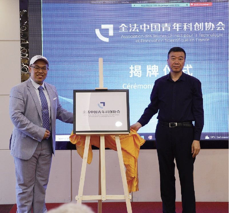 【欧洲时报记者黄冠杰报道】7月2日下午,随着中国驻法国大使馆周家贵教育公参和会长王笑圳的揭牌,由在法中国青年学者、留学生自发组织并筹备建立、受中华人民共和国驻法大使馆教育处科技处指导的全法中国青年科技创新协会在法国巴黎华天中国城酒店正式成立。中国驻法国大使馆朱国亮参赞及各在法专业协会、校友会、学联代表出席到场祝贺。当天还举办了第一期中法学者创客生化大健康领域交流论坛,法国国家科学院院士维斯托夫(Éric Westhof)教授应邀做了“在学习和发现中论无用和有用”学术报告。