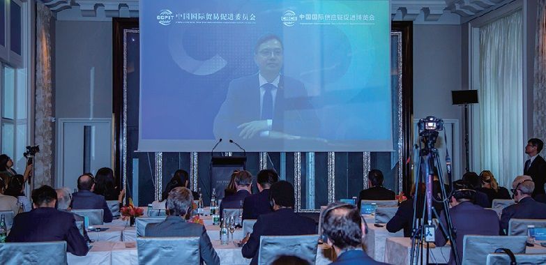 中国国际展览中心集团公司总裁冯耀祥通过视频连线,向现场嘉宾进一步介绍了链博会的主要情况。他表示,链博会的承办单位是中国国际展览中心集团公司(以下简称中展集团)。中展集团是中国贸促会的直属企业,是中国会展业的头部企业,拥有丰富办展经验,能够为国内外展商提供全方位的优质服务。首届链博会得到联合国工发组织、粮农组织、环境规划署、贸发组织、世卫组织、国际商会等国际组织的大力支持。