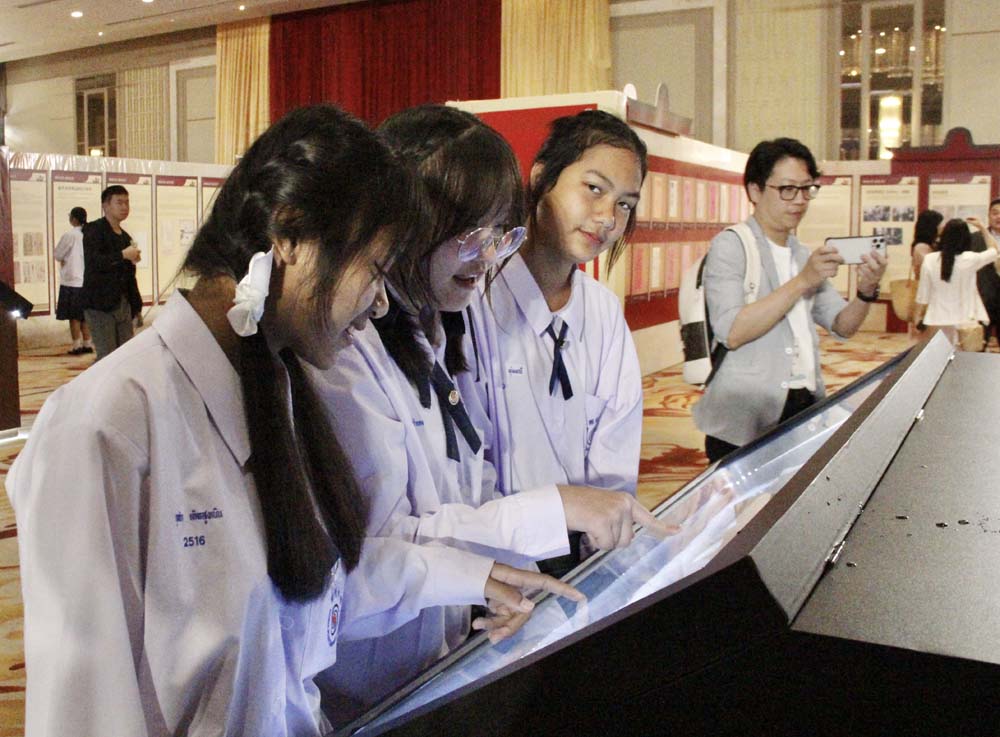 7月9日,在泰国曼谷,当地学生参观“三江出海 一纸还乡”侨批历史文化展。(图片来源:新华社)