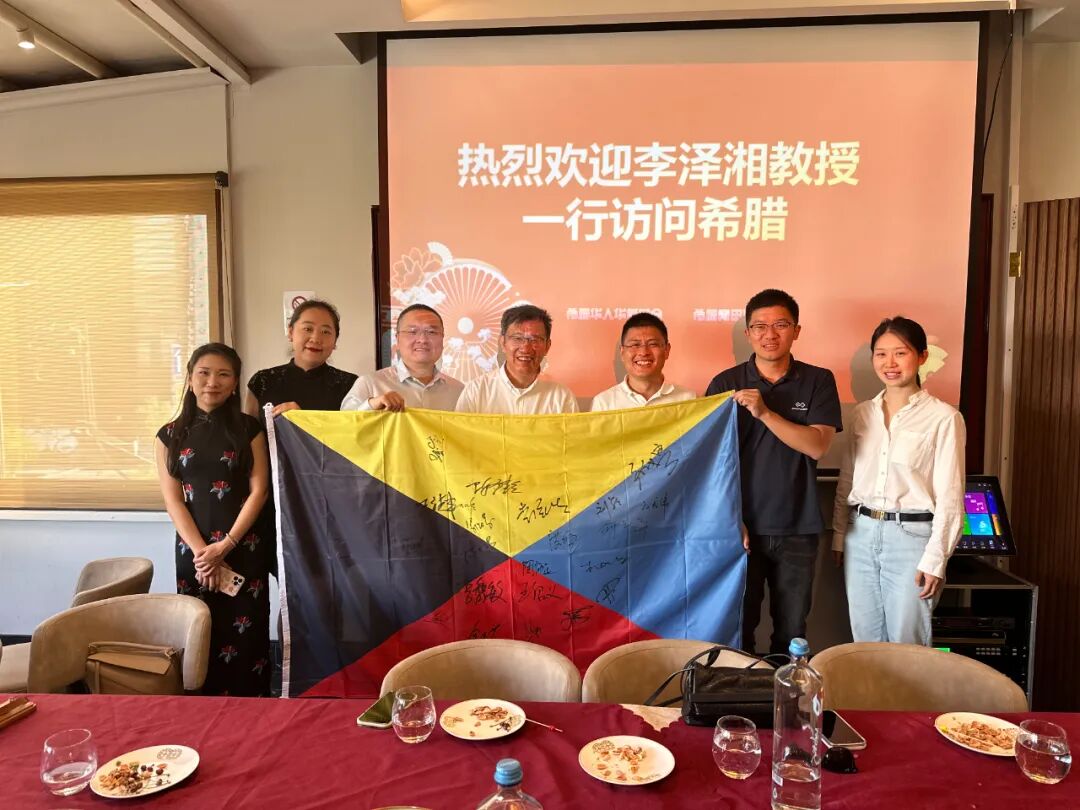 7月12日,李泽湘教授、逸动科技首席执行官陶师正、宁波齐盛航运科技有限公司董事长高涛及团队成员,走访希腊华人社团。与希腊青田同乡会、希腊华侨华人总会和旅希兄弟侨团代表、当地华文媒体及相关企业希腊友人举行座谈。