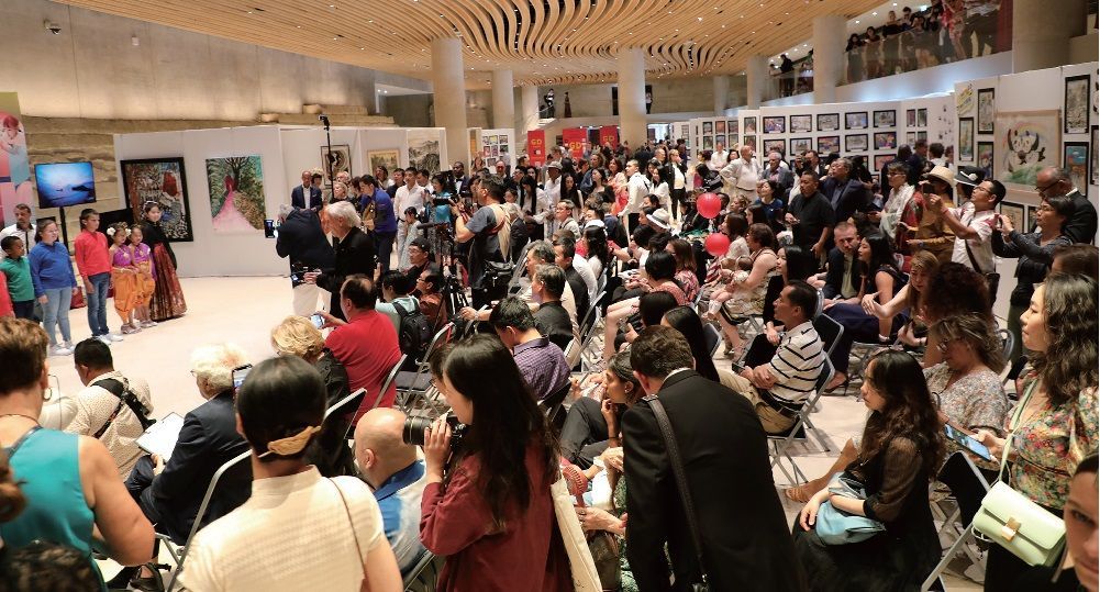据国际艺术联创联展组委会主席亚丁介绍,“国际艺术联创联展”活动是由联合国教科文组织协会世界联合会(WFUCA)与法中交流促进会(ADEFC)联合发起主办,针对国际艺术家、各国少年儿童开展的一项艺术交流、互动活动。活动以普鲁斯特小说《追忆似水年华——去斯万家那边》为主题,邀请五位国际艺术家以斯万城堡为原型,以普鲁斯特儿时的回忆为创作元素,呈现五幅“未完成”的作品,即每幅画作上都会有艺术家精心设计的“留白”。由3-14岁的各国少年儿童,用天真烂漫、天马行空的想象,共同完成这5幅“未完成”的作品,实现“联创”,开启一场跨时空、跨地域、跨文化的艺术对话。去年在卡鲁塞尔厅举行了首届联展。当晚,除绘画展览外,还举行了服装走秀、食品展示、艺术表演等活动。