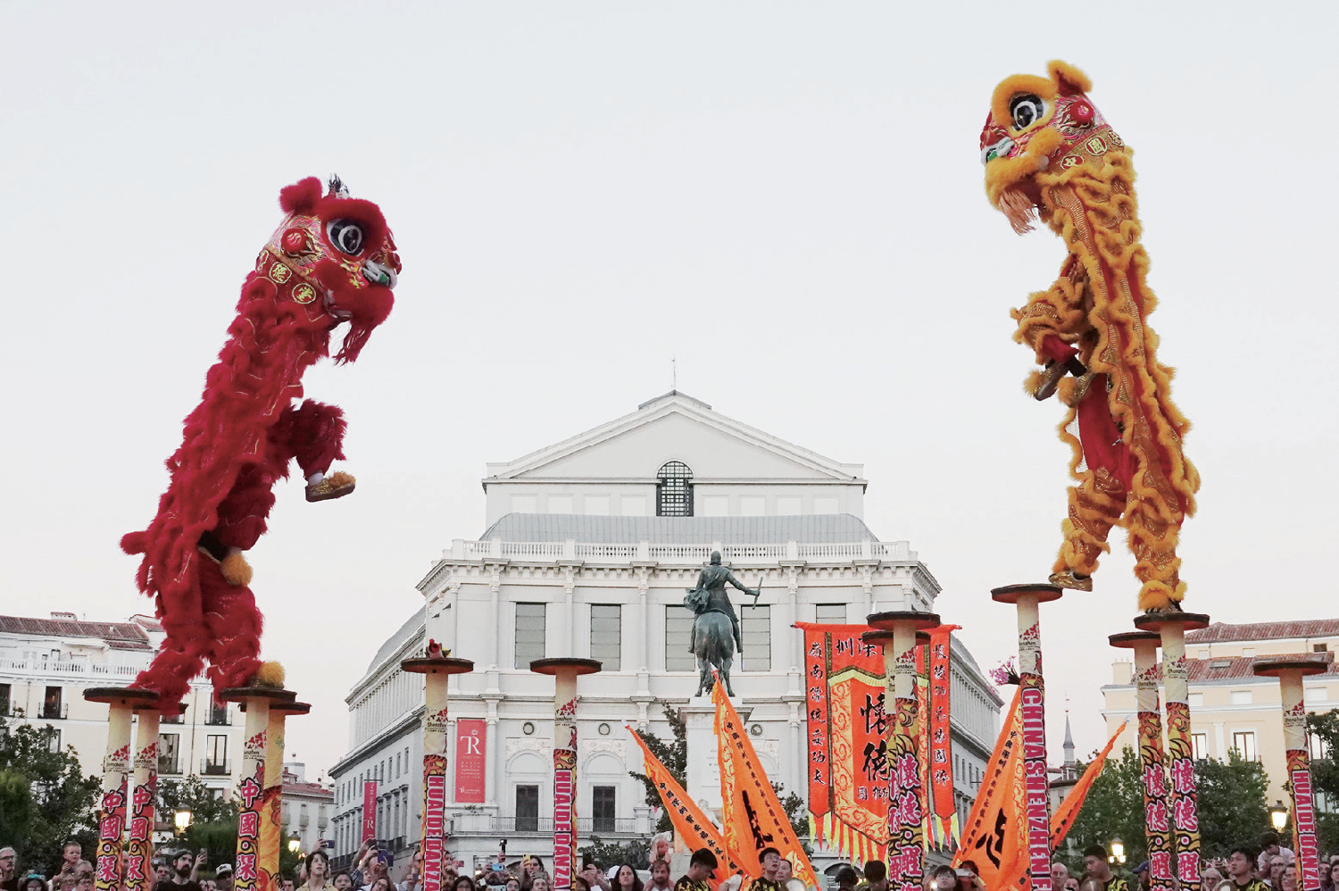 此次名为《双狮献瑞》的高桩醒狮表演作为马德里“城市之夏”艺术节的重头戏之一,依次在帕克·德·卢西亚文化中心广场、马德里王宫旁的东方广场和著名的普拉多大道轮番亮相。表演由广东醒狮文化新生代传承人担纲,把传统南狮套路和惊心动魄的高桩绝技精妙结合,集“高、难、惊、险、美”于一体。
