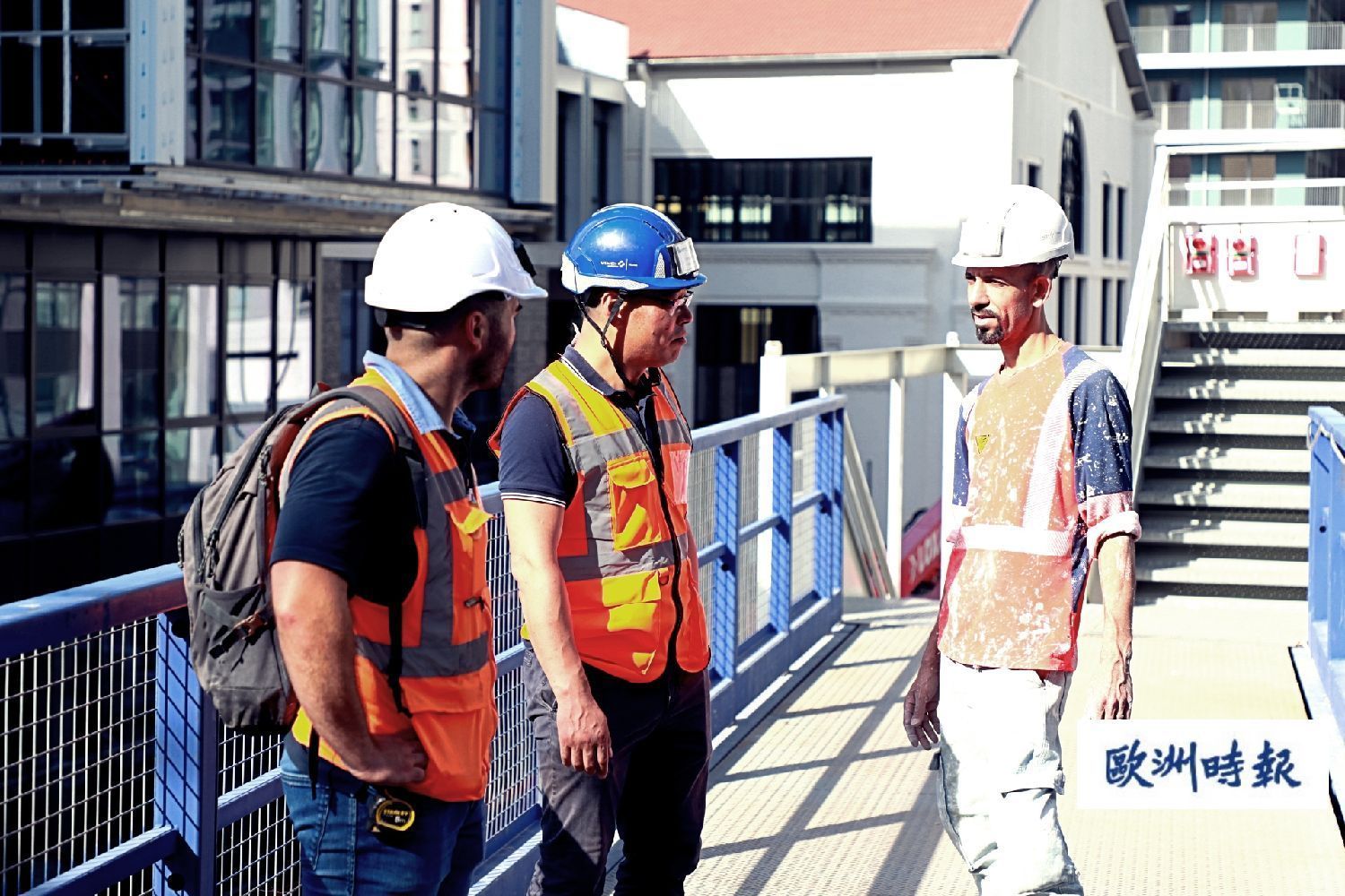 进入奥运村之前,陪同记者参观的法国东阳建设总裁楼良军让记者换上了工程靴,穿上橘色工程专用背心,戴上工程帽。一切准备就绪,楼良军陪同记者前往项目接待处,查验身份证件换领门禁卡刷卡进入奥运村项目工地。