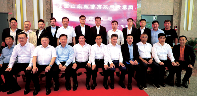 东营港经济开发区党工委书记郭学峰(前右)和法国华人进出口商会第一副会长刘景峰(前左)签署“战略合作框架协议”。
