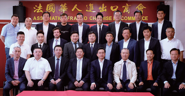 东营访欧经贸代表团与法国华人进出口商会成员和旅法侨界侨领代表合影。