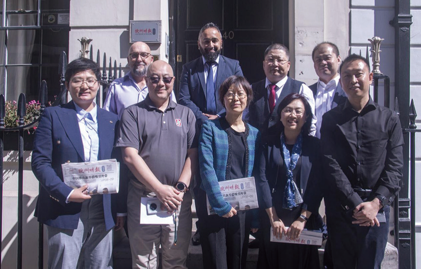 中银律所代表团在《欧洲时报》英国分社大楼前合影。(图片来源:欧洲时报记者朱若溪 摄)