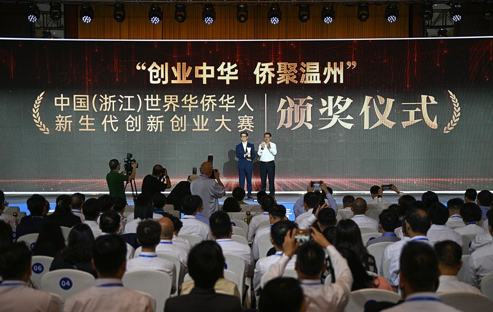 图为中国(浙江)世界华侨华人新生代创新创业大赛颁奖仪式在温州举行。(图片来源:中新社)