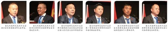 意大利华商总会会长洪森淼代表南部侨界致辞,他说,南部文成同乡总会在历任会长的带领下,不断发扬壮大,努力构建和谐侨社,广泛团结与服务侨胞,积极推动中意两国经贸和文化的友好交流,助力祖国家乡的发展和建设,重视侨界新生代的培养和发展,愿新一届会长团在周建军会长的带领下再攀新的高峰。