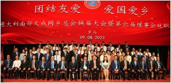 意大利南部文成同乡总会换届大会暨第六届理事会就职典礼9日在罗马花园万豪酒店举办,周建军荣任第六届意大利南部文成同乡总会会长。中国常驻联合国粮农机构代表广德福大使,中国驻意大利大使馆公参过琳、张虓领事,文成县政府经贸侨务考察团团长刘树智以及考察团团员应邀出席了活动,出席庆典活动的还有来自意大利各地华社代表、意大利文成同乡总会会员及其家属、意中友人等300余人。