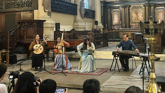 8月22日晚,备受瞩目的伦敦国际中国音乐节首场音乐会在伦敦圣墓教堂隆重举办。来自伦敦幽兰琴社的演奏者们以高超的技艺娓娓呈现了经典乐曲《梅花三弄》和《卧龙吟》。与此同时,音乐会还特别邀请了享有盛誉的音乐大师、天津音乐学院教授李凤云与王建欣的琴箫合奏《暗香》宛如行云流水,音韵婉转悠扬。伦敦大学亚非学院琵琶古琴导师程玉则以娴熟的技艺精湛演绎了《十面埋伏》。另外,英国中乐团的表演也为音乐会锦上添花,带来了《送别》等精彩节目。