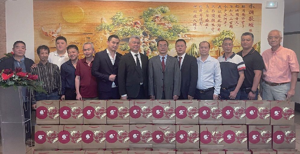王向阳总领事(右6)与法国留尼汪浙江同乡会会长团成员在活动现场。