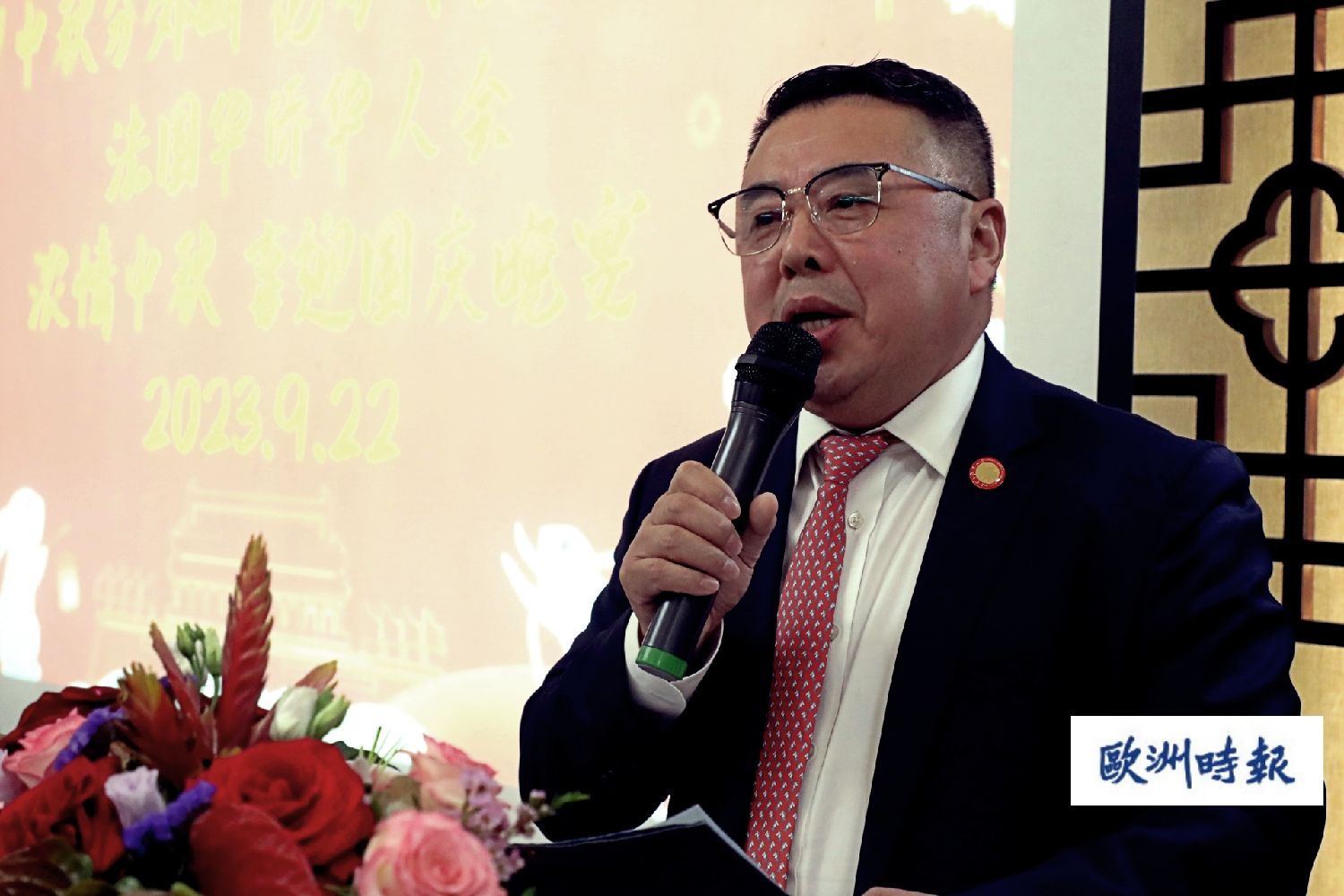 法国华侨华人会主席蔡君柱向前来参加中秋晚会的协会成员和亲属表示热烈欢迎。蔡君柱表示,中秋是中国的传统节日,它不仅象征着团圆和祝福,也代表着我们对家乡和亲人的深深思念。今晚,我们聚在一起,就像家人一样,共同庆祝这个美好的时刻。