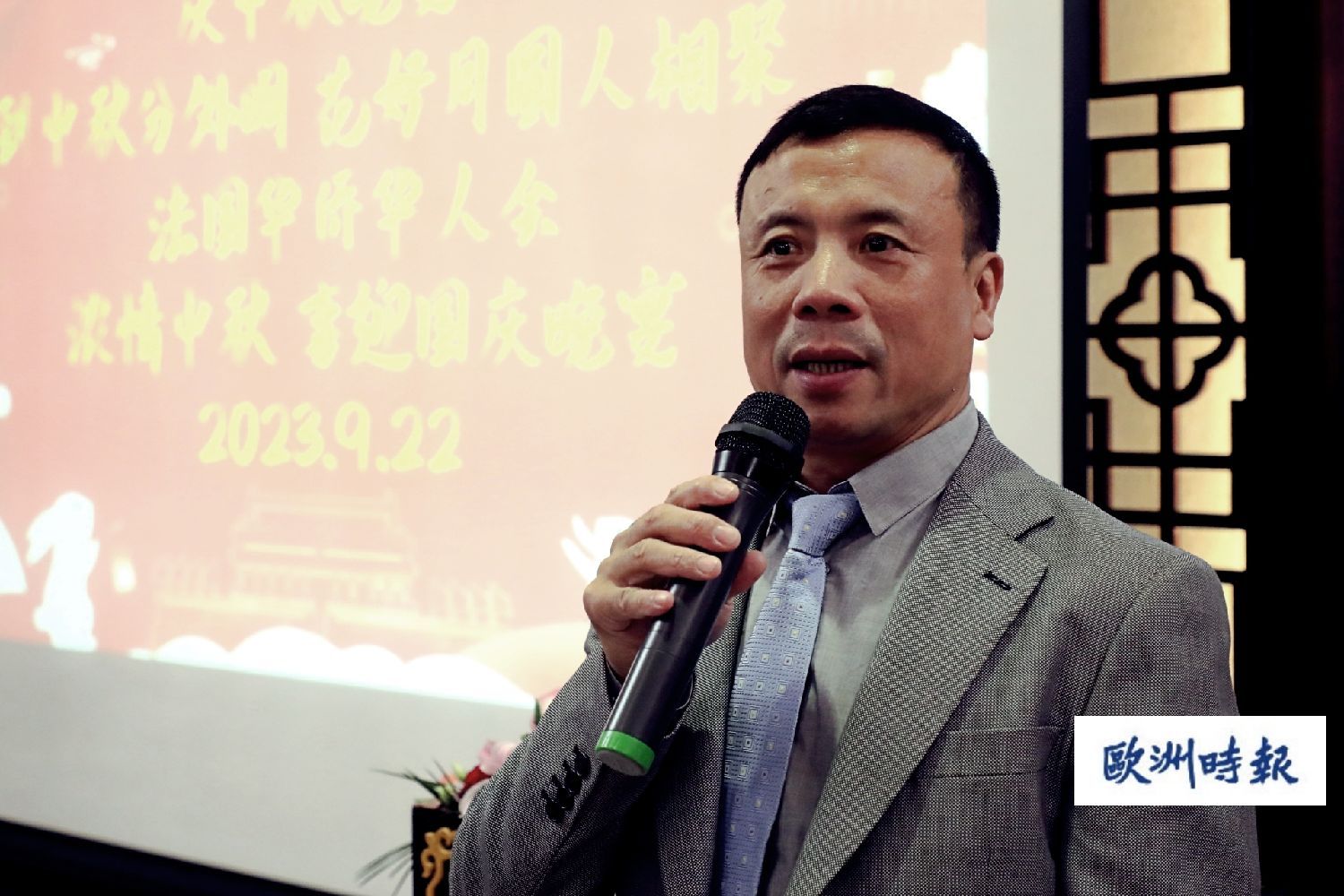 法国华侨华人会常务主席郑金标主持了当天的晚会,他也向协会成员和亲属们致以节日的问候和美好的祝福。