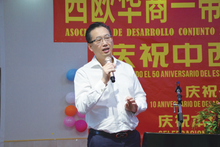 西班牙福建华人华侨总商会主席陈信召在致辞中多次对西欧华商一带一路联合发展同盟会协会表示祝贺,并希望西班牙福建华人华侨总商会与该协会的友谊长长久久,他将会与叶立新一道,共同致力于帮助侨胞的发展与生活。